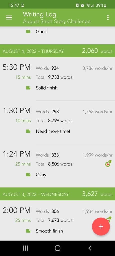 - Screenshots are from the app where I keep track of word counts, goals, and writing sprints. It’s been really helpful with all my writing projects since I downloaded it a few months back.