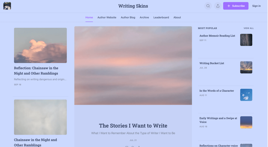 You can subcribe to Writing Skins, here!