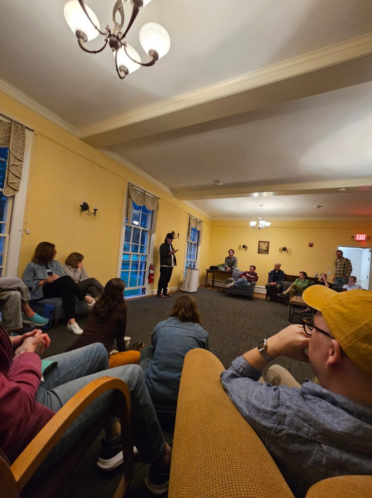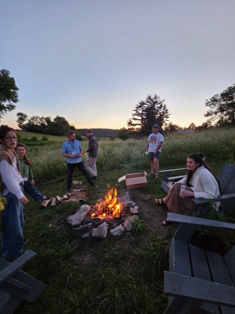 While a lot of the residency was planned by the program, there was still a lot of space for us to build our own offerings. Like a cohort member set up a primordial scream at the end of residency that (I didn’t go to) but sounded like a lot of fun. Me and a couple other cohort members set up a 1st term reading for other 1st termers to share their work with each other. There was even an impromptu, unorganized air hockey tournament that people got pretty passionate about. Me included. And my favorite, a last night 1st term bonfire.